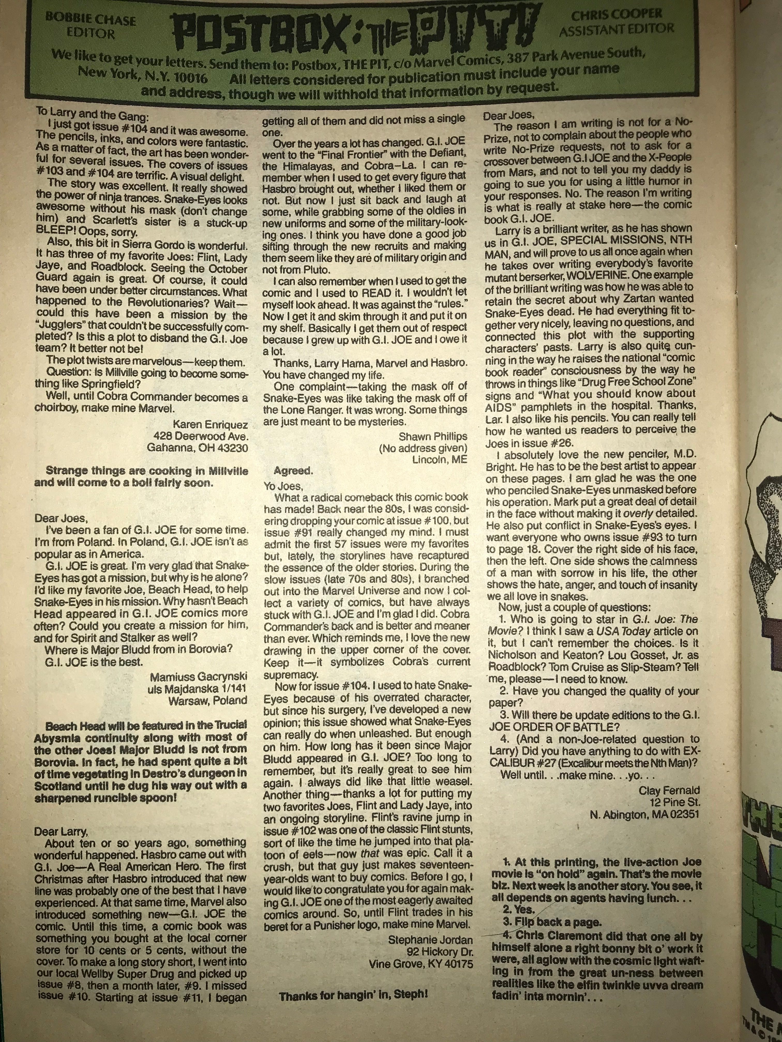 My letter is in G.I. Joe #110, March 1991. I’ll sign copies! I had not planned on posting this here, but Apple Photos OCR recognized this as a ‘Christmas’ photo because fellow New England fan Shawn Phillips (No address given) mentioned Christmas.