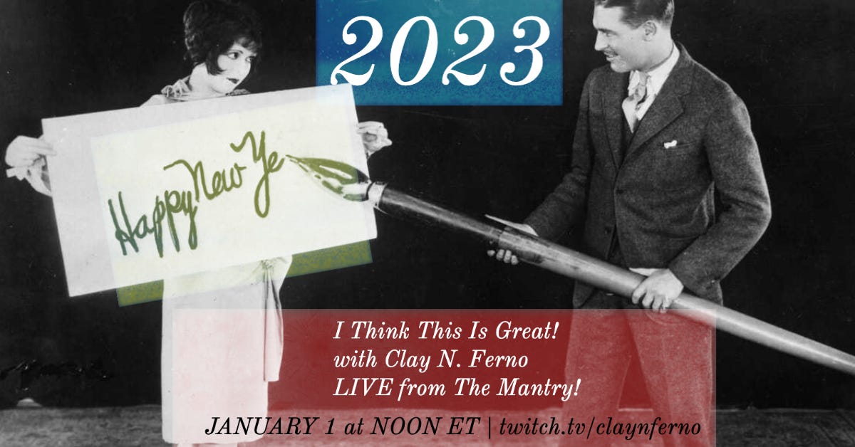 I Think This Is Great! Live from The Mantry with Clay N. Ferno at Noon ET on NEW YEAR'S DAY. twitch.tv/claynferno